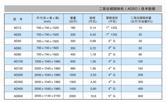 氣調冷庫安裝設備二氧化氮脫除機(ADSO)技術數據展示圖: